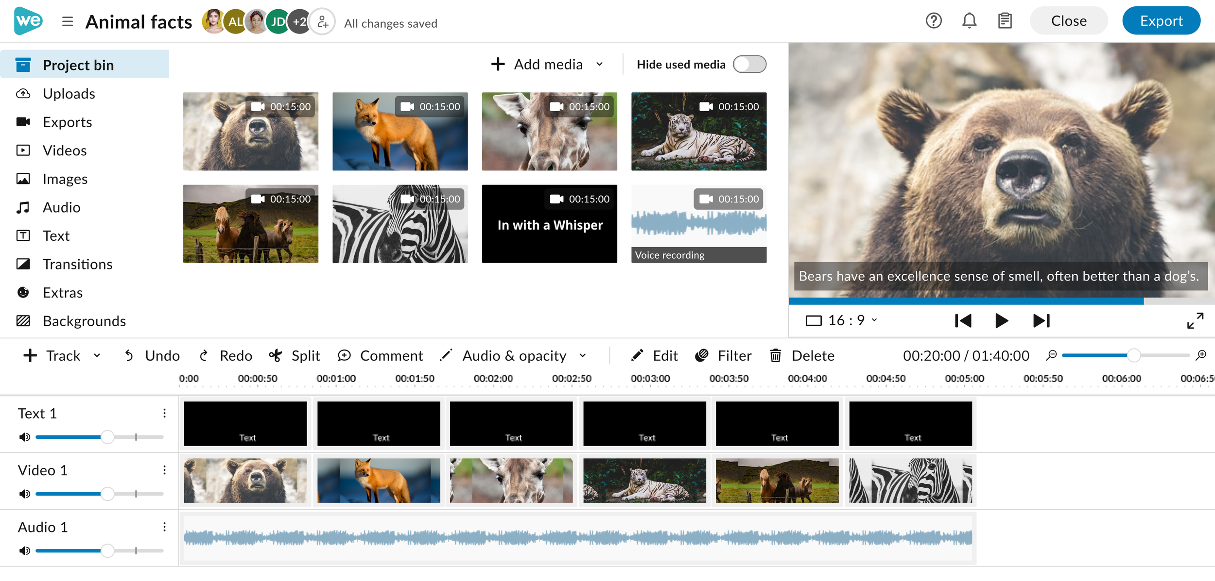 After exporting their video, users can auto-generate subtitles, make edits to the auto-generated subtitles, then download or share their video along with the subtitle file.